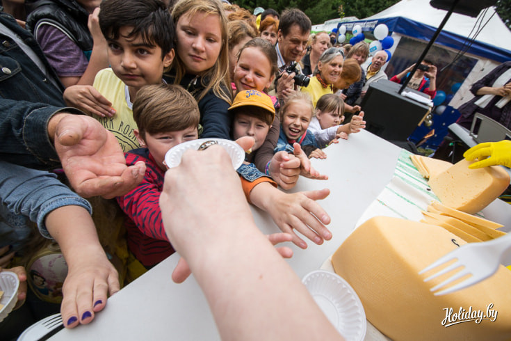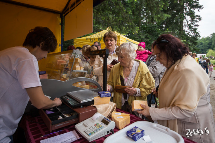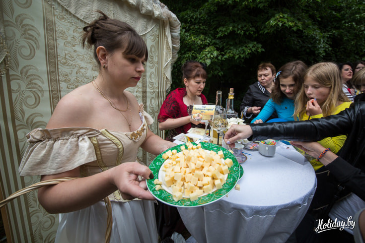 Целый день в Центральном ботаническом саду разворачивалась настоящая аппетитная феерия вкуса. Здесь весело и шумно отгремел третий «Сырный фестиваль». Гости собирались с самого утра. Хмурое небо никого не напугало. На суд зашедших было представлено более 70 видов самых разных сыров от 8 ведущих белорусских производителей. Помимо них на фестивале представили свои угощения козье фермерское хозяйство и домашние сыроделы из Славгорода.