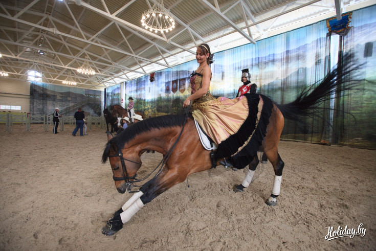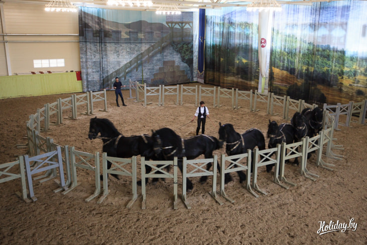 Но одно дело – лошадиные силы на четырех колесах, а другое – на четырех ногах. Конный «парк» — настоящая гордость комплекса. Здесь для туристов устраивают конные шоу, дают возможность сфотографироваться с лошадями, освоить верховую езду и прокатиться как по манежу, так и на открытой территории.