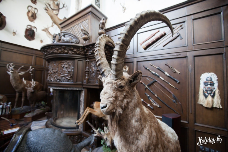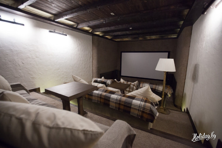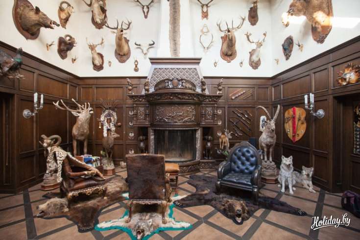 В той части деревни, что располагается ближе к пирсу, есть еще один центр притяжения – Трофейный дом. В нем собраны десятки охотничьих трофеев, добытых хозяином усадьбы Евгением Новоселецким в разных уголках планеты. В этом же Трофейном доме готовят к вводу в эксплуатацию спа-комплекс с саунами и 25-метровым бассейном. Здесь же есть детская комната, а также 3D-кинотеатр – для настоящих киноманов собрана прекрасная фильмотека.