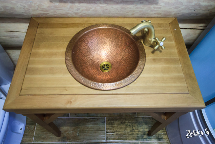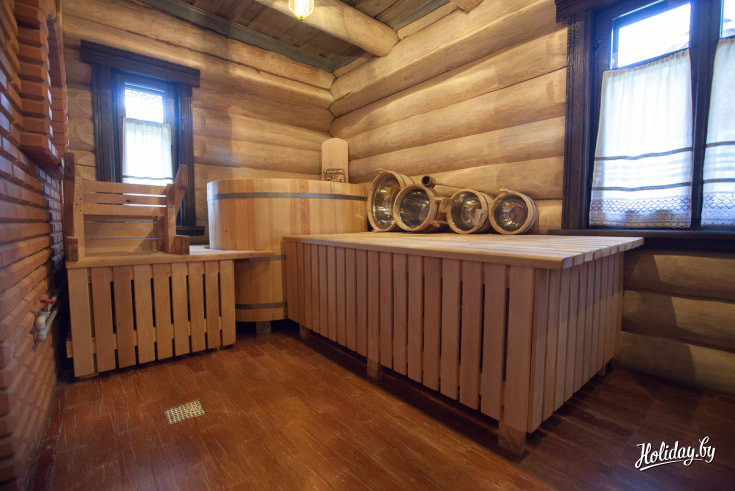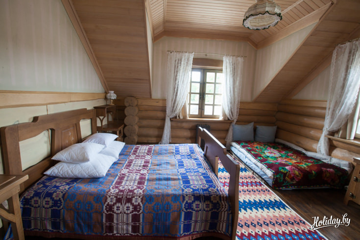 Вся мебель в домах — деревянная. А в качестве декора — льняные ручники, скатерти, занавески и маляванки. В каждом домике есть сауна и купель, чтобы в конце насыщенного дня человек мог как следует расслабиться и отдохнуть. А вот телевизоров и wi-fi намеренно нет нигде — все для того, чтобы оторваться от привычной жизни, перегруженной информацией, и насладиться тишиной и покоем. Современность во всем этом антураже выдает только бытовая техника вроде чайника, кофеварки и фена.