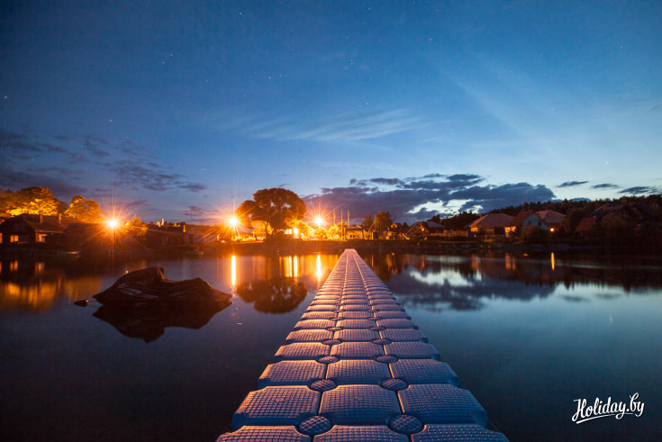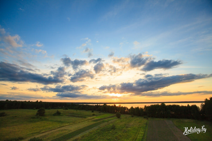 И для исчерпывающей романтики можно дождаться вечера и отправиться в музей самогоноварения. Помимо того, что представлены различные самогонные аппараты (и здесь же варят местную самогонку), на верхушке музея на высоте 12 метров расположилась смотровая площадка, откуда открывается прекрасный вид на окрестности, на оба берега Нарочи, на весь комплекс. Отсюда можно наблюдать красивейшие закаты. А днем в хорошую погоду с этой вышки виден даже Вильнюс.