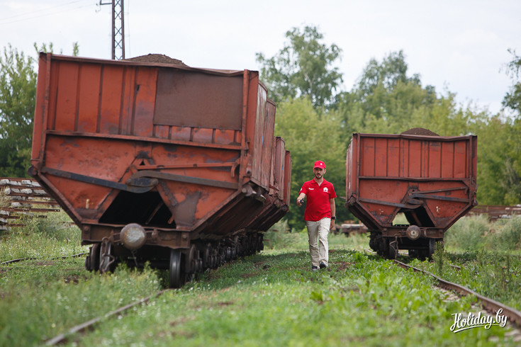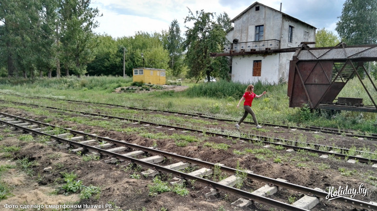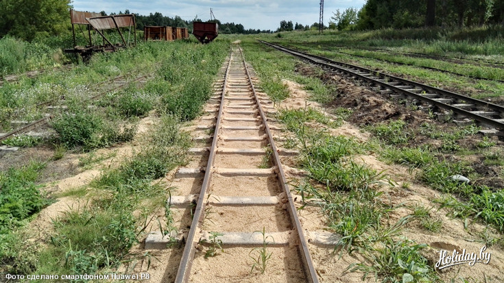 Попрощавшись со стариками, мы должны были ехать дальше — в Рогачев. По дороге решили сделать короткую остановку на узкоколейке под Быховом. Место охраняется, но нам повезло — сторож отошел, благодаря чему удалось погулять по рельсам, подвигать вагоны и сделать снимки на наши аппараты Huawei P8.