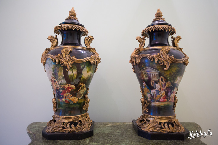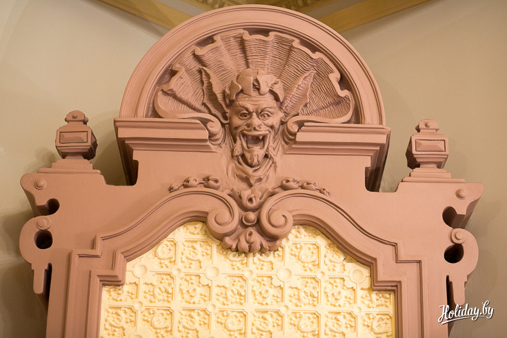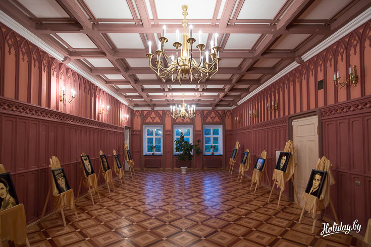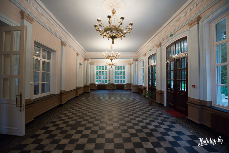 — На восстановление дворца понадобилось 20 лет, — рассказал местный сторож, — сюда приезжали специалисты из Минска. Все старались восстановить по чертежам. Лепнина совершенно новая, потому что во время войны вся красота была уничтожена.