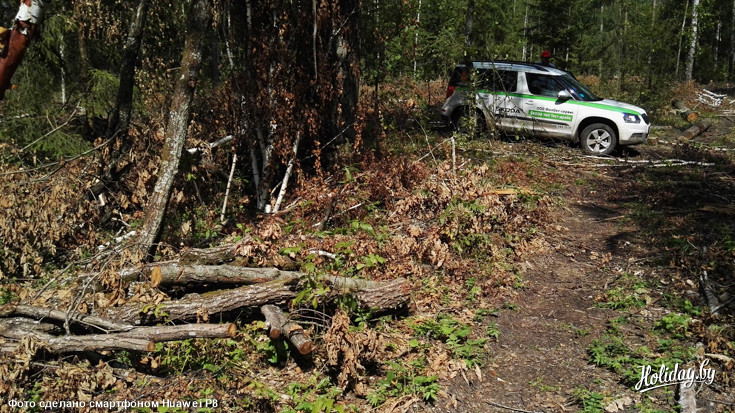Виды захватывали дух. Однако чем дальше в лес мы пробирались, тем больше срубленных деревьев встречали. Местный лесхоз хорошо «поработал», оставив после себя десятки пеньков и поваленных деревьев. Финальной точкой стала большая вырубка, порадовавшая нас полным отсутствием насекомых в воздухе и… всяческих звуков. Действительно, выйдя из машин посредине леса мы не услышали никаких признаков цивилизации, хотя находились примерно в 4-6 км от трассы. Даже вездесущий мобильный оператор МТС здесь как бы сказал «Ребята, вы за пределами цивилизации». Пришлось отложить хвастовство экзотическими снимками с белорусских болот в соцсетях до выезда на асфальт, где сигнал резко стал очень сильным. Ставим нашим экспедиционным Skoda Yeti положительные оценки за «внедорожный» опыт и полученные от него эмоции – возвращаемся на маршрут.