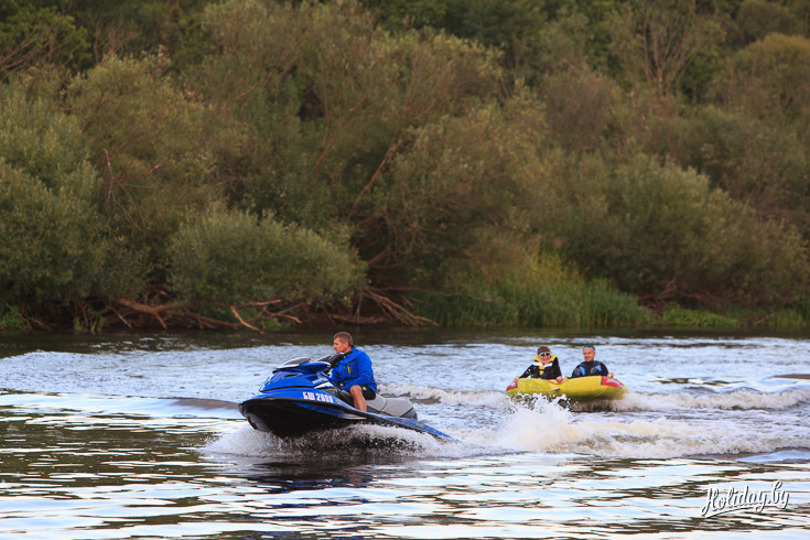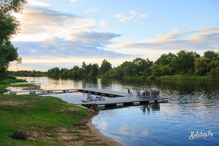 В субботу нет ни одного свободного домика (всего их в «Ранчо» двенадцать). Номера машин на парковке преимущественно белорусские, гости играют в бадминтон, жарят шашлык и катаются по Сожу на катамаране.