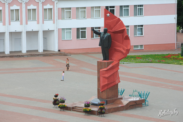 Какой город без памятника Ленину. Мозырский Ленин особенно красив. Рассмотреть его удобнее всего с местного замчища. Отсюда же по выходным можно наблюдать за свадебными кортежами, которые кружат по центру города с песней Moscow Calling.