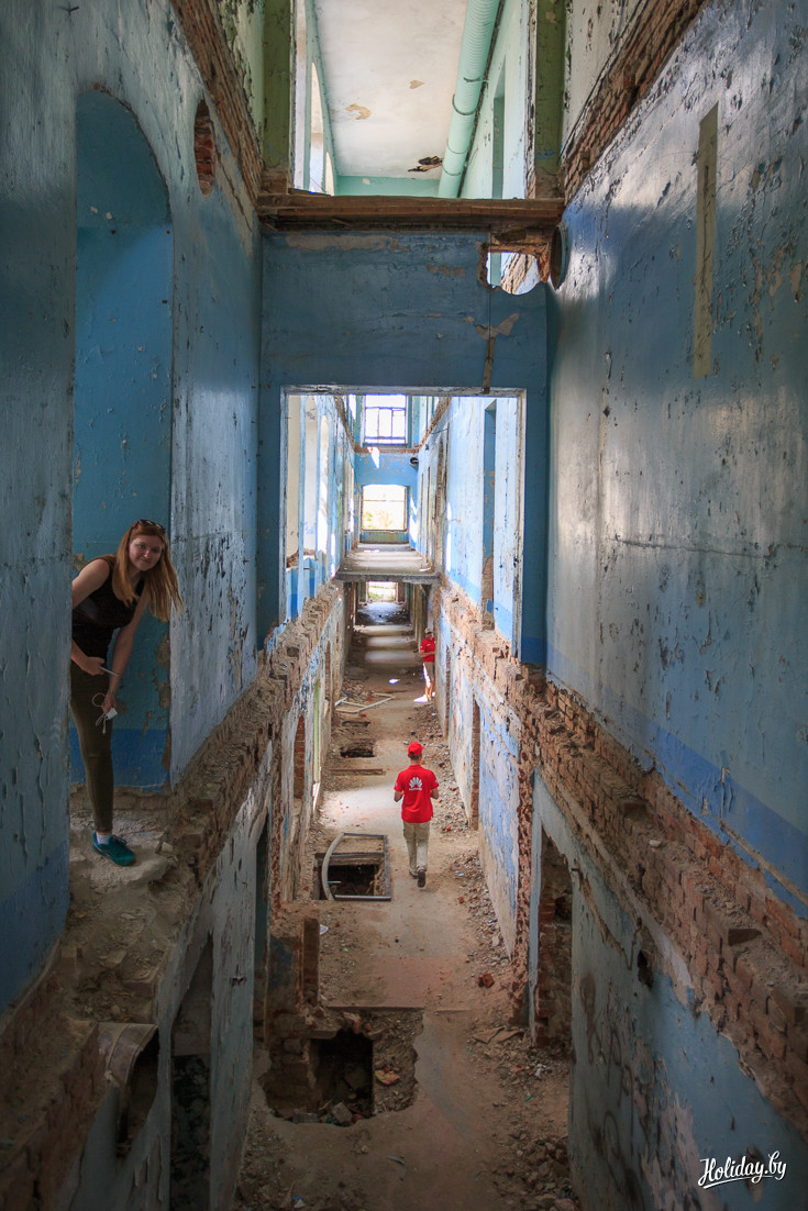 Третья точка обязательная к посещению — «больничка». Заброшенное здание 1910 года, которое находится аварийном состоянии. Хотя это не мешает детям беспрепятственно бегать по развалинам с первого на второй и третий этажи.