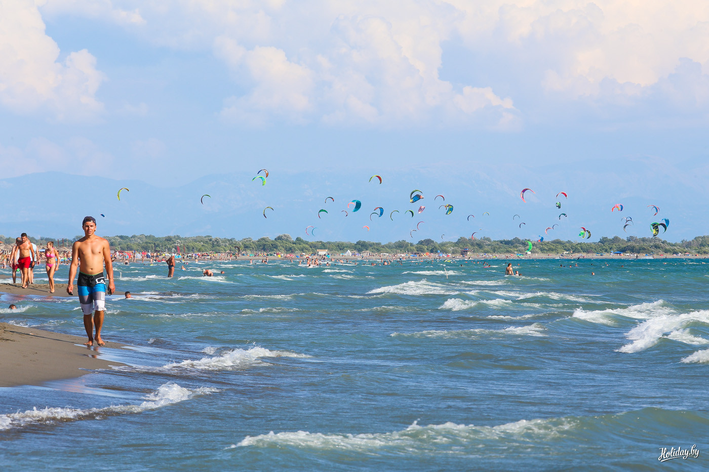 Большой пляж или Velika Plaza это полтора десятка километров серого тёплого и полезного вулканического песка прямо на границе с Албанией. Место идеально для отдыха с детьми. За счет открытого пространства место облюбовано кайтсерферами. Сама местность Velika Plaza поделена на оборудованные пляжи, каждый из которых имеет своё название. Читаем указатели на дороге и сворачиваем в понравившийся. Картинка на биг-борде соврала? Разворачиваемся и едем дальше. Мы остановились на пляже Tropicana и с удовольствием провели оставшуюся половину дня.