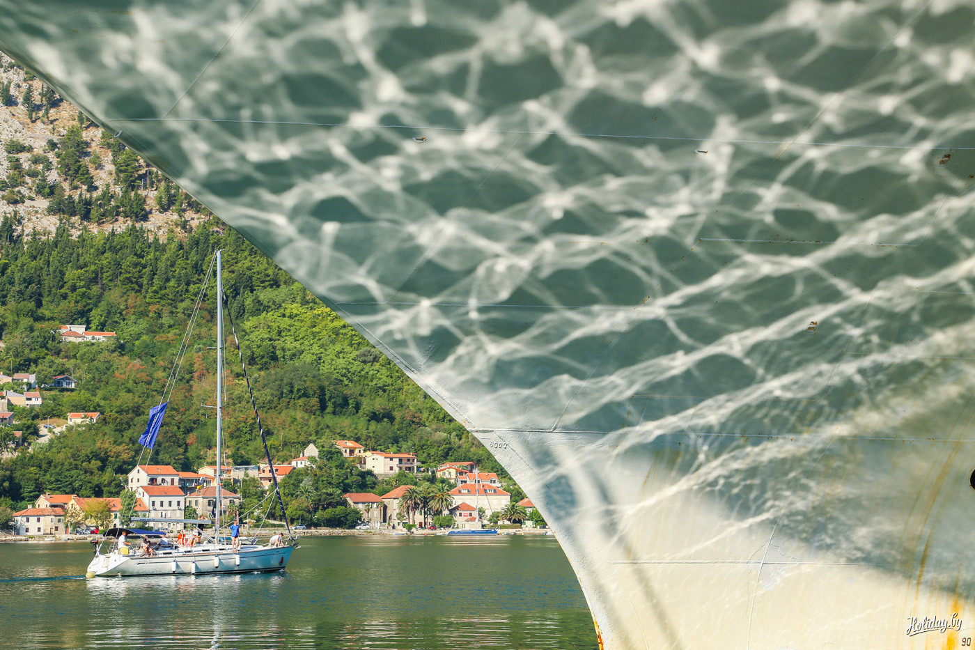 Некоторые суда "разгружают" туристов без захода в порт. Немецкие или французские пенсионеры на специальных шлюпках отправляются в старый город. Вода в бухте Которая несмотря на активное движение судов остается прозрачной.