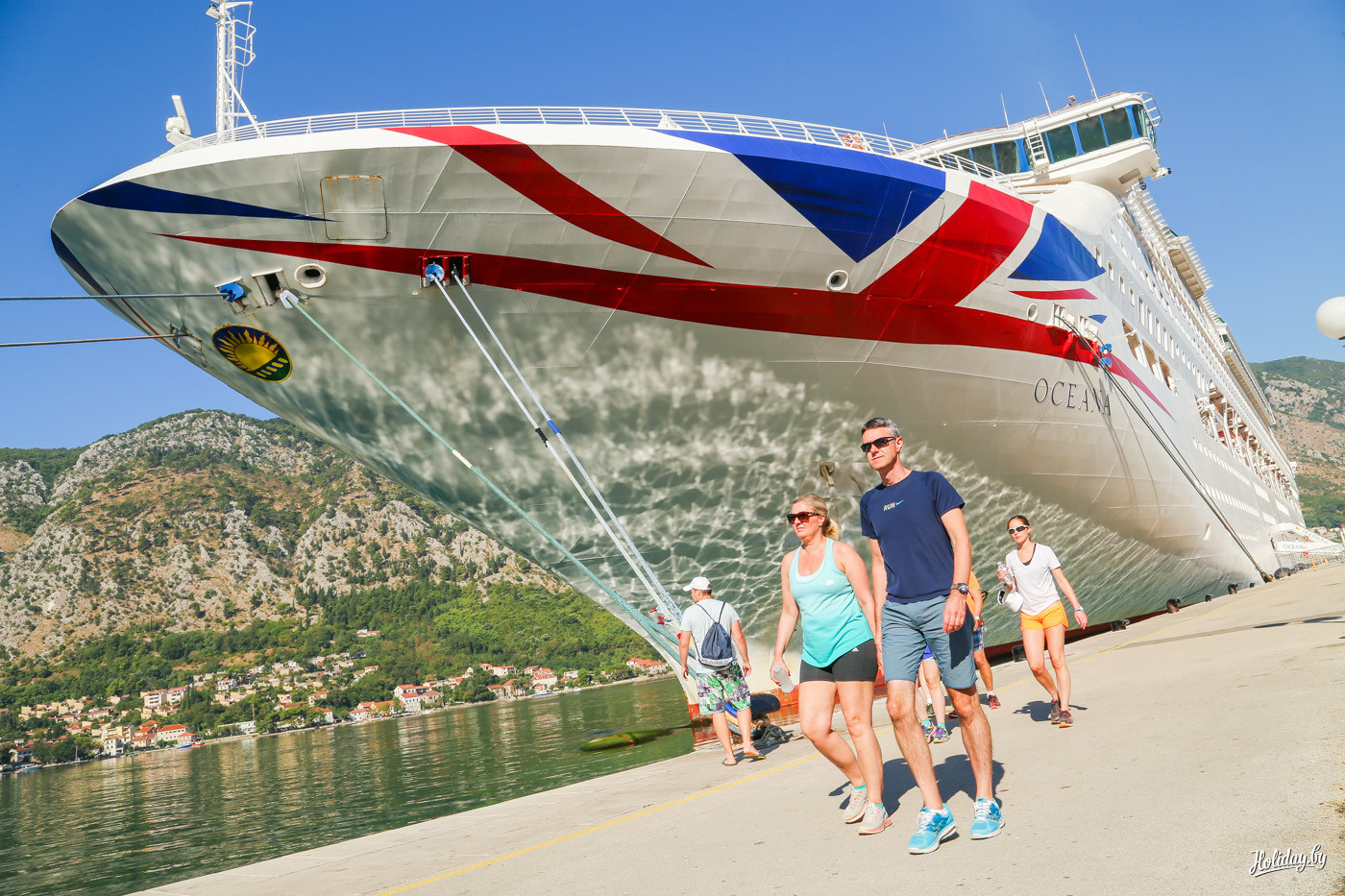 "Как эта хрень сюда могла зайти!?" - первое, что рождается в голове, когда утром ты выходишь из старых городских ворот. Огромные лайнеры ежедневно привозят в Котор тысячи туристов, которых тут же разбирают по автобусам и лодочкам, чтобы показать красоты города и увезти на следующую остановку в их круизе.