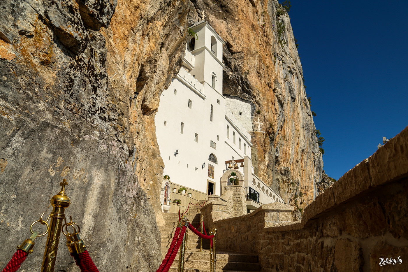 "Только с истиной верой в Бога стоит и можно поехать в это место" - пишут путеводители про монастырь Острог и тут же указывают на непростую дорогу в горах и серпантины. Храмовый комплекс высечен в скале на высоте 1000 метров над уровнем моря во времена нашествий Османской империи в 17-м веке.