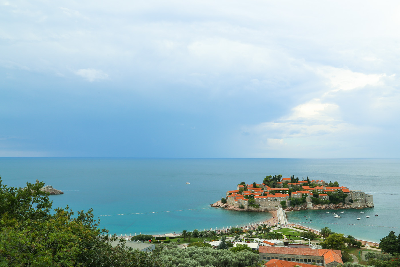 Для тех, кто не хочет быть зомби "отель-пляж" в Будве работает множество агентств по аренде авто. Страна в пятнадцать раз меньше по площади, чем Беларусь, поэтому машина под боком делает доступными для вас все красоты Черногории. Сразу же выехали в сторону границы с Албанией и стало понятно, что только точками А и Б маршрут не ограничится. На фото - визитная карточка страны - остров Святой Стефан, который сегодня превращён в большой фешенебельный отель.
