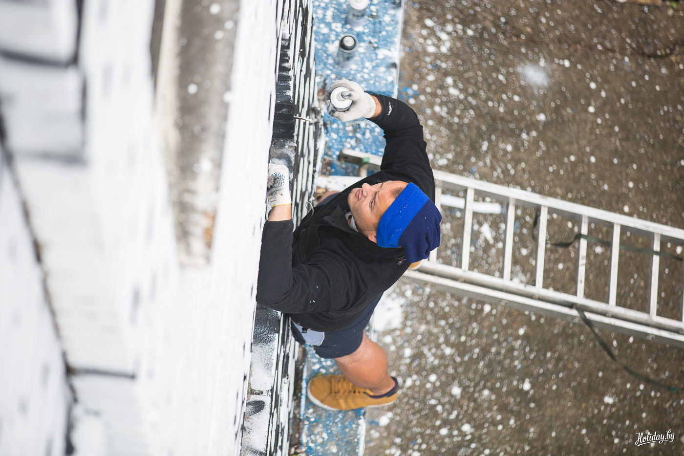 В Минске полным ходом идет арт-фестиваль Vulica Brazil, за время которого в Минске должно появиться шесть новых граффити. Над стрит-артами работают уличные художники из Бразилии и Беларуси. Так, на улице Октябрьской, 16 создают портрет Кароля Яна Чапского, который занимал пост мэра Минска в конце XIX века. Корреспондент Holiday.by понаблюдал за работой художника.