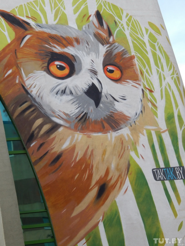 На фасаде Минского городского комитета природных ресурсов что на Плеханова, 18а, появилось граффити ушастой совы, символа 2015 года. Настенный рисунок создан художниками из стрит-арт студии «ТАКТАК» Мария Рудковская (ник — GRAPEWAVE) и Алесь Благий (KONTRA) при поддержке общественной организации «Ахова птушак Бацькаўшчыны». Всего на граффити понадобилось более 50 баллончиков и 6 литров акриловой краски. Ушастую сову рисовали с изображения настоящей птицы, передает tut.by.