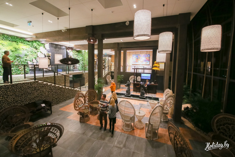 Сегодня можно с уверенностью сказать, что построенный в 2006 аквапарк в Друскининкай стал одним из магнитов для туристов не только из Литвы. В год городок на границе с Беларусью посещает около 300 000 туристов, по данным местного туристическо-информационного центра. Поэтому одной из программных задач является улучшение и развитие инфраструктуры. Я специально использую такие сухие определения, чтобы вы сами на контрасте от увиденного могли ощутить, как можно относится к выполнению тривиальных задач. Взять, например, такую - "ввести в строй гостиницу при аквапарке". В последнюю очередь будешь думать, что рядом с советской эпохи зданием на берегу Немана появиться островок... Индонезии. Самый такой настоящий островок - когда мебель, материалы покрытий стен и полов, процедуры в SPA, декор - всё это приехало сюда с острова Бали. Задумка была воплощена в жизнь местными дизайнерами и архитекторами.