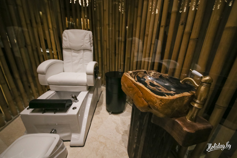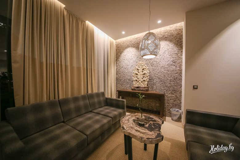 СПА-центр отеля Flores занимает первый этаж сразу за рецепцией. По кругу находится ряд кабинетов. Беглый взгляд в отпечатанный прайс-лист говорит о том, что цены не заоблачны. Например, расслабляющий массаж для всего тела продолжительностью 60 минут стоит 30 евро. Самый дорогой двухчасовой ритуал для тела для двоих называется "Гармония тела и души" и стоит 120 евро. И это самая дорогая процедура. Самым недорогим является 20-минутный массаж спины - 10 евро.