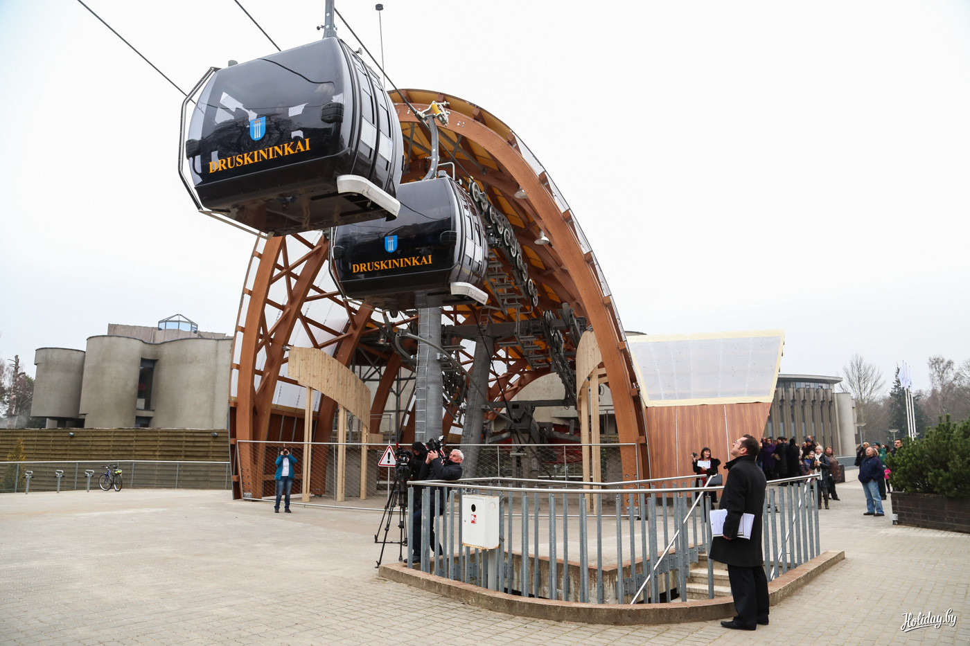 Один год и двадцать дней потребовалось властям литовского городка Друскининкай, чтобы ввести в строй объект, которого до сих пор не было во всей Литве. В городе с 14 тысячами людей населения появилась канатная дорога. Это и новый вид общественного транспорта, и ещё больше удобств для туристов. Несмотря на то, что сроки запуска несколько раз переносились, такой срок считается чуть ли не рекордным для такого рода объектов чуть ли не во всем мире. С радостью воспользовался приглашением туристско-информационного центра Друскининкай, чтобы быть в числе первых пассажиров канатки.