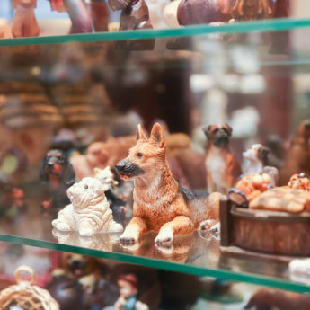 На двери ценник - 2 евро со взрослого и 1 евро с ребенка. Весь музей занимает небольшую комнату, но здесь можно провести до нескольких часов. Увлечение фигурками собак началось в семье Витаутаса Кусаса 25 лет назад, когда на выставке собак он вместо настоящей купил супруге фигурку пса. Эта первая фигурка занимает почётное место на полке. Коллекционирование с тех пор увлекло хозяина музея, его супругу, детей, а также "знакомых и незнакомых людей". То, что вы видите на фотографии - это 3500 собачек, а ещё 1000 фигурок храниться в запасниках. Уплотнять коллекцию автор не видит возможности.