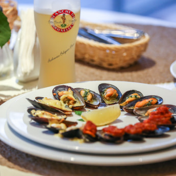 На следующий день в моём рационе были мидии в виде ассорти - с зелёным маслом, с острым соусом, под сыром. Нужно было быстро научится делать "щипцы" из одной раковины, чтобы успевать за Гинтарасом, который кушает их как семечки. Летом, когда много людей и большой оборот, моллюски приезжают в ресторан свежими "прямо с самолёта" три раза в неделю.