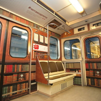 На стены библиотечных вагонов вынесены множества цитат из известных произведений – это как затравка для любителей книг. Если фраза понравилась, вы можете скачать книгу не выходя из вагона.