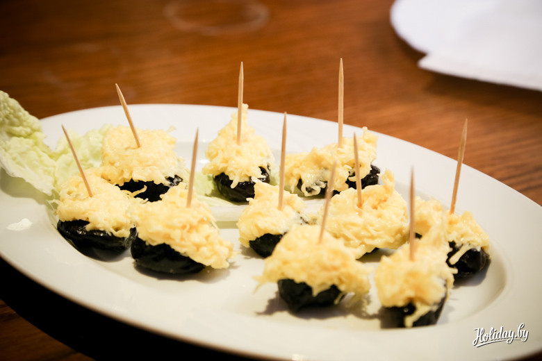 Клайдас меня угостил необычной закуской, рецепт которой приехал сюда из Вильнюса. Это чернослив с чесноком и сыром на шпажках. После появления в "Глиняном горшке" эту закуску стали подавать во многих заведениях Паланги.