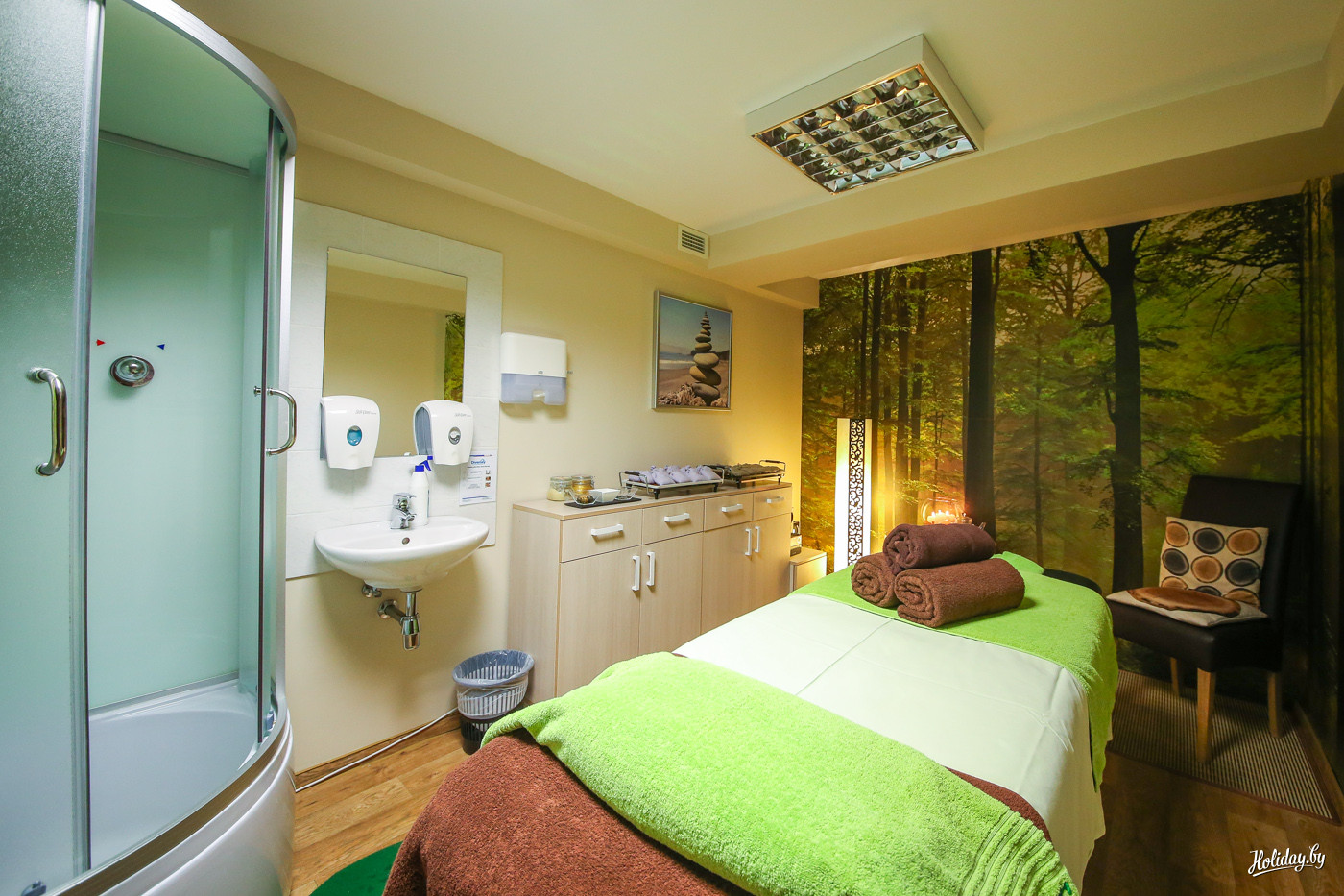 Как и в любом SPA-салоне в санатории "Градиали" разработаны специальные программы. Самые актуальные, полагаю, это программы выходного дня на 3 дня и 2 ночи. Стоимость рассчитана на проживание в 2-местном номере и включает по 10 процедур для каждого проживающего. "Сосна" для женщин, "Дуб" для мужчин, "Покой", "Вдохни глубоко", "Очаровательные линии" - так звучат названия SPA-программ выходного дня.