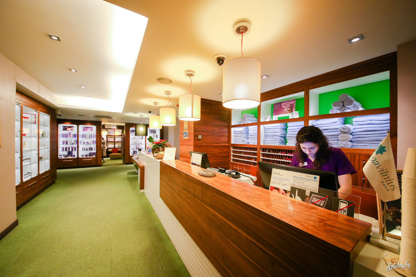 Все процедуры отдыхающие получают в нескольких зонах СПА-центра. В начале обязательный визит на рецепцию SPA, чтобы зарегистрироваться в системе. Тут я признаюсь, что воспользовался служебным положением и попросил о встрече с заместителем директора SPA Vilnius в Друскининкай Кристиной Ясмонтене, которая работает в этом же центре врачом-диетологом.