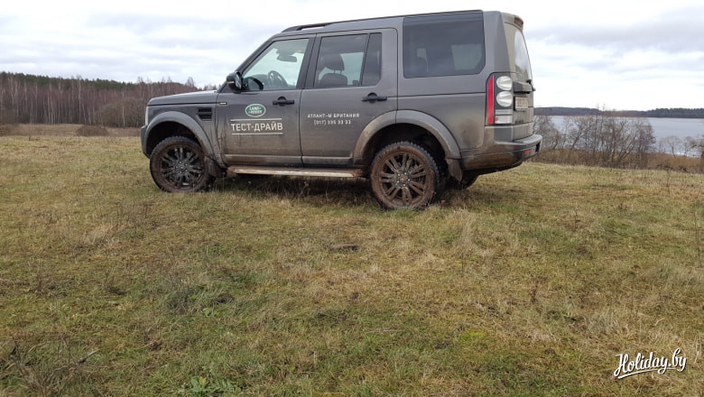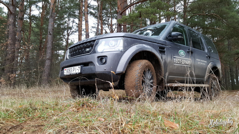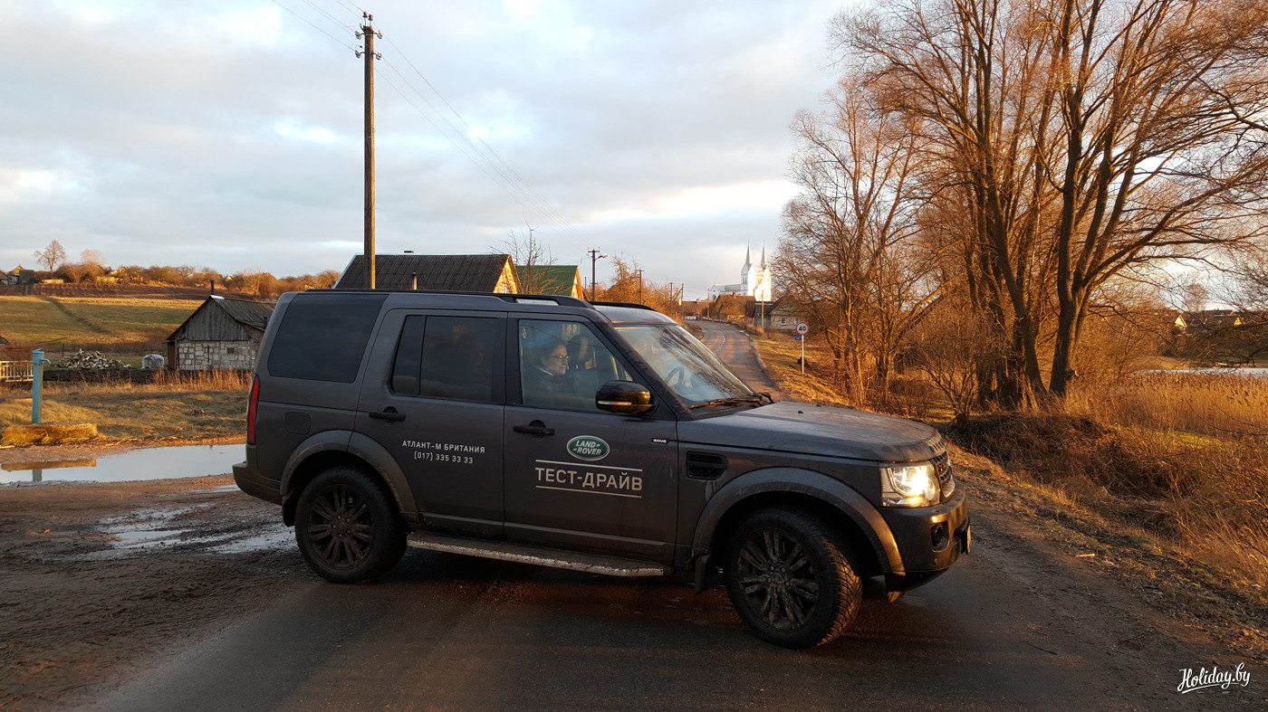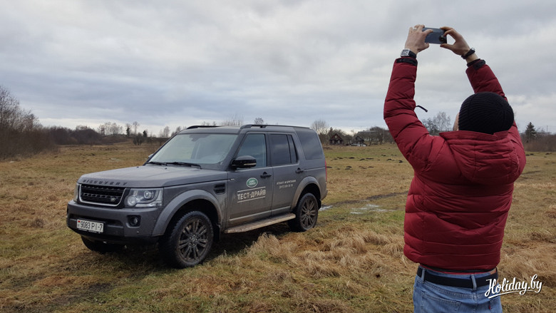 «Самым эмоциональным моментом стали небольшие выезды на бездорожье на Land Rover Discovery 4. Продолжаю убеждаться в том, что это необычный микс из пребывания пятой точкой на дорогущем кожаном диване, в то время как глаза видят ровное поле и всякое отсутствие дороги. Снег только-только сошел с браславских полей, и вся вода не успела впитаться глубже. Таким образом получился очень клейкий верхний слой покрытия, особенно если добавить к нему глиняный состав местной почвы. Пневмоподвеска поднимает машину выше над землей, есть смысл перейти на пониженный ряд передач и к ручному управлению. Пока мы не забивали протектор глиной всё шло неплохо, однако стоило пробраться чуть дальше – машина просто тонула в глине. Это отнюдь не означает, что у «Дискавери» внедорожные качества так себе – просто не было такой цели провести полдня с лопатами вокруг внедорожника.
