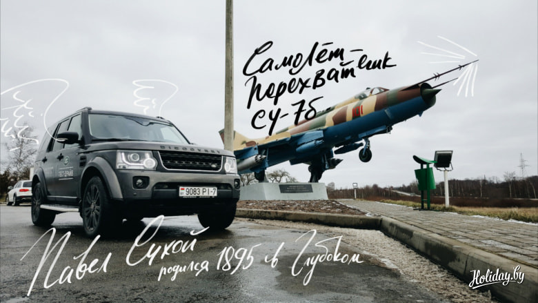Ещё через какое-то время мы повстречали настоящий военный самолет, который когда-то спроектировал уроженец Виленской губернии Павел Сухой. Рядом с ним стояли задумчивые путешественники с российскими номерами. Подходить к незнакомцам было немного страшно: выглядели двое, как типичные представители 90-х.