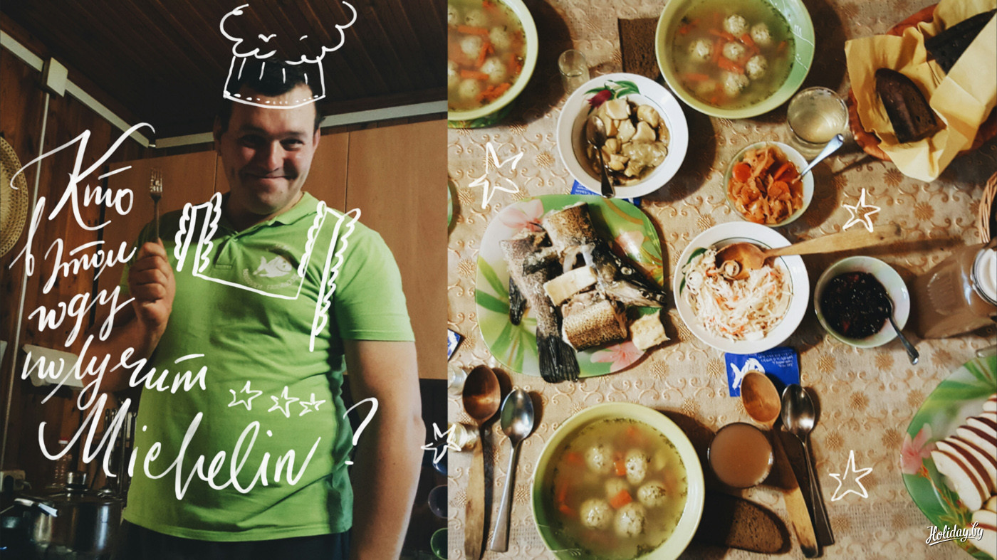 Юрий угостил нас холодными закусками собственного приготовления и немного рассказал о себе. Долгое время хозяин двух усадеб жил в Минске, но пару лет назад решился уехать на край света, восстановить дома в маленькой деревне и помогать местной природе, развивая в этом крае агротуризм. А еще в ближайших планах у Юрия провести фотовыставку красот Браславщины в Минске.