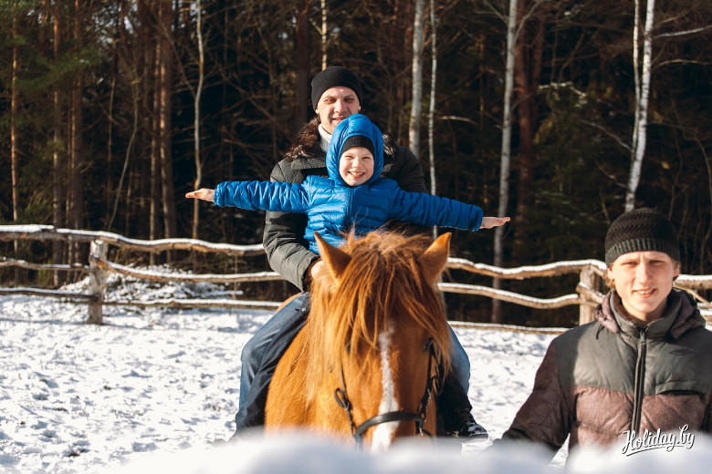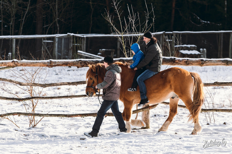 Закончив с гастрономическими вкусностями, перешли к активностям. Мы уже убедились: ни одно путешествие Holiday не может обойтись без лошади. Только если в Буцевичах мы катались со шлемом и в седле, в усадьбе «Утрина» нам предложили опробовать более гуманную езду верхом: без седла и шлема. Бесспорно, такой вид катания более сложный. Ты просто должен коленями вцепиться в лошадь, и управлять ей с помощью поясницы.