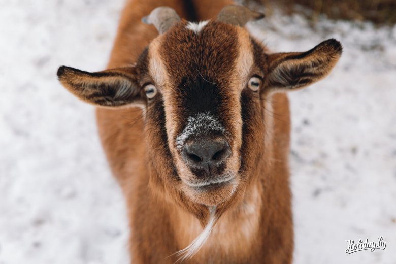 На усадьбе живут овцы, куры, гуси, утки и альпийские козы. Последние очень смешные и немного нелепые, зато добрые.