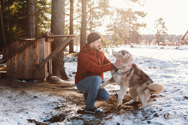 Хаски – настолько обаятельные животные, что поздороваться с ними хотелось даже больше, чем с владельцами усадьбы. Но правила приличия никто не отменял. На пороге фермы нас уже встречали Роман, его 18-летний брат Руслан и их мама. Роман сказал буквально пару слов о комплексе и перешел к разговорам о собаках: