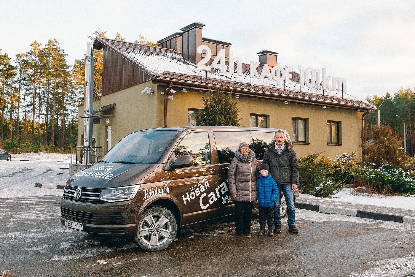 Пока за окном все еще виднелись звезды, наши герои дремали, а Егор даже посапывал. Но стоило солнцу показать свои первые лучи, семья тут же взбодрилась. Не будем скрывать, энергию добавил и кофе, благополучно выпитый в полюбившемся Holiday кафе «101 километр».
