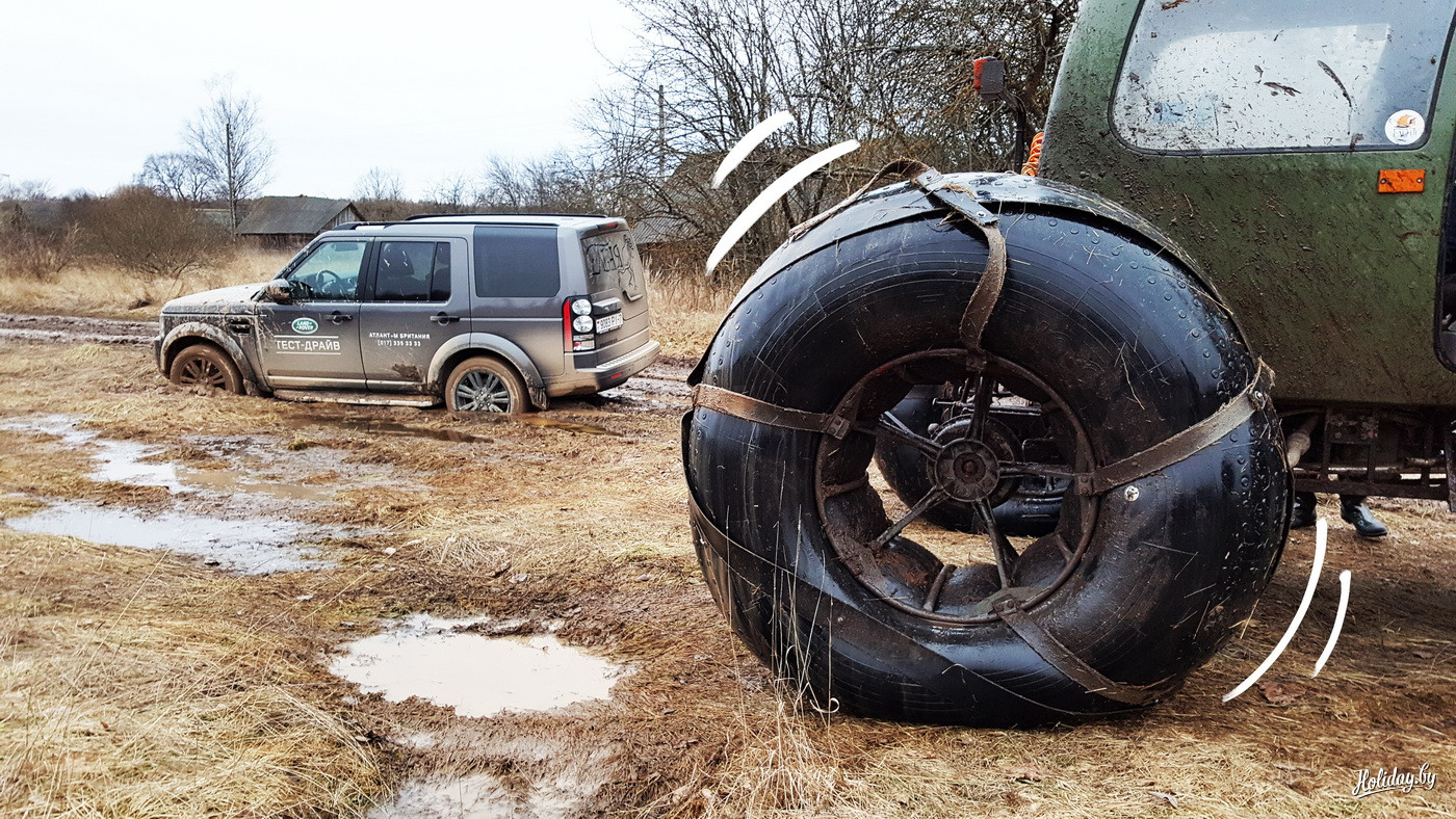 Андрей Барашко: «На обратном пути поход за человеком, у которого есть трактор, прибавляет антуража поездке. Пока ты ждёшь подмогу, случаешь рассказы местных, как в три трактора отсюда вытягивали «нафаршированный джин Тойоту» и мысленно молишься, чтобы не стать героем очередной байки для будущих поколений. Только бы хватило одного трактора! Land Rover мягенько вылазит из грязи – достаточно было небольшого усилия, чтобы вся мощь и специальные возможности машины вновь воспряли и выдернули сами себя из болота подобно барону Мюнхаузену.