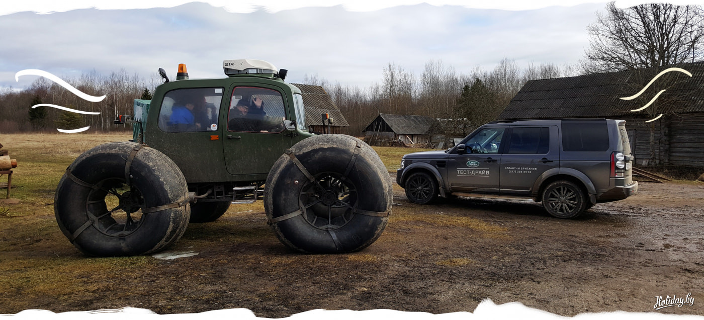 Мы проехали буквально пару метров и оказались около домика местного Егеря. Там нас ждал наш основной транспорт – болотоход.