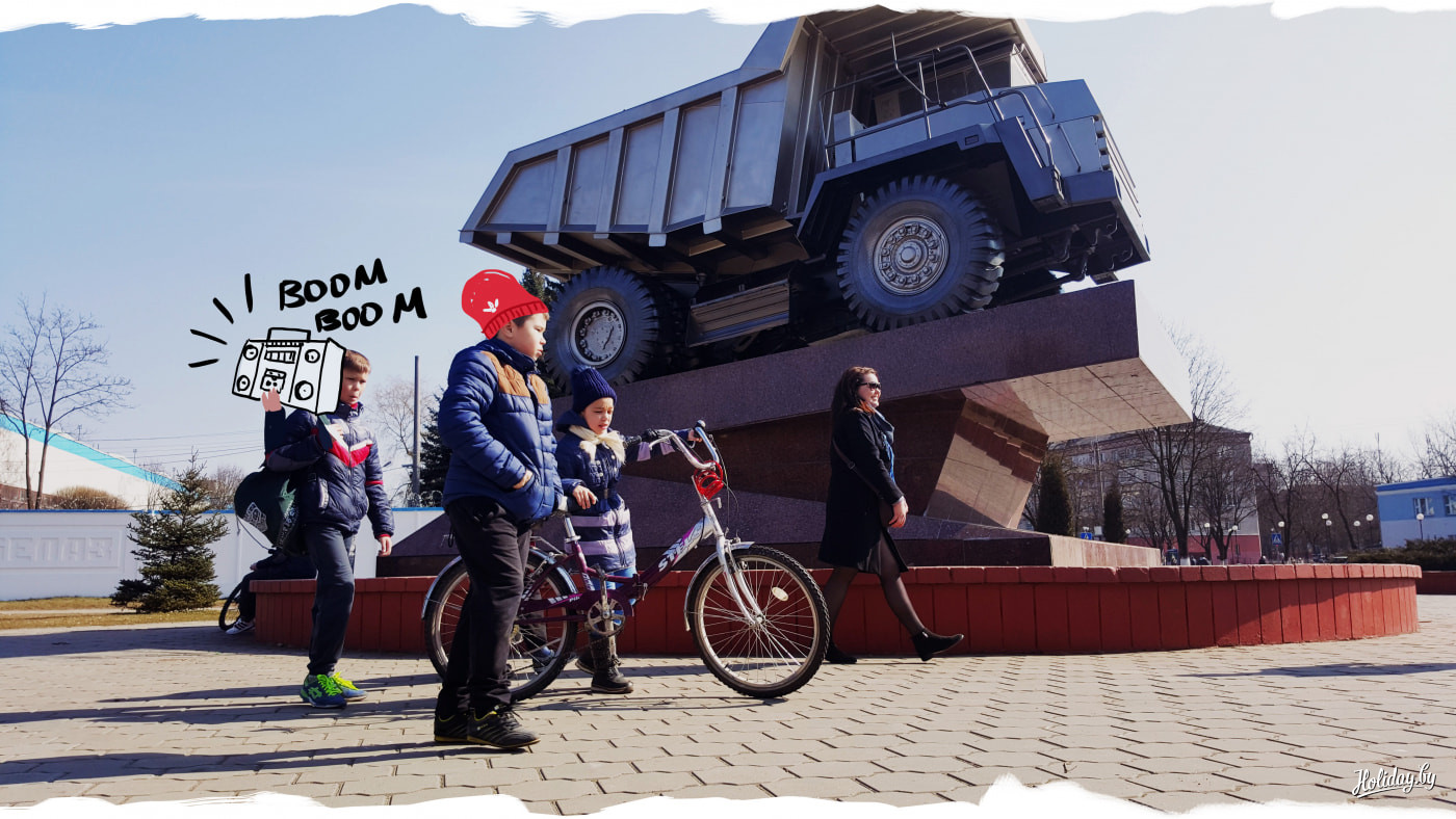 Жодино – довольно маленький город с населением 63 000 человек. Сегодня там работают всего семь школ, две гимназии и лицей. Развлечений в городе не так много, поэтому первым делом мы решили взглянуть на памятник могучему 25-тонному БЕЛАЗу. Возвели его в 2002 году в честь людей, производящих мощную технику, а местные жители до сих пор приходят полюбоваться самосвалом.