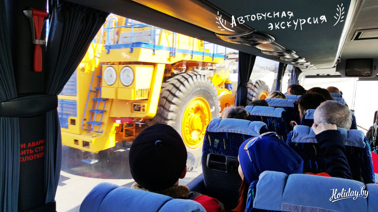 Так выглядит отправление самосвала с очередной группой во время экскурсии по БЕЛАЗу.