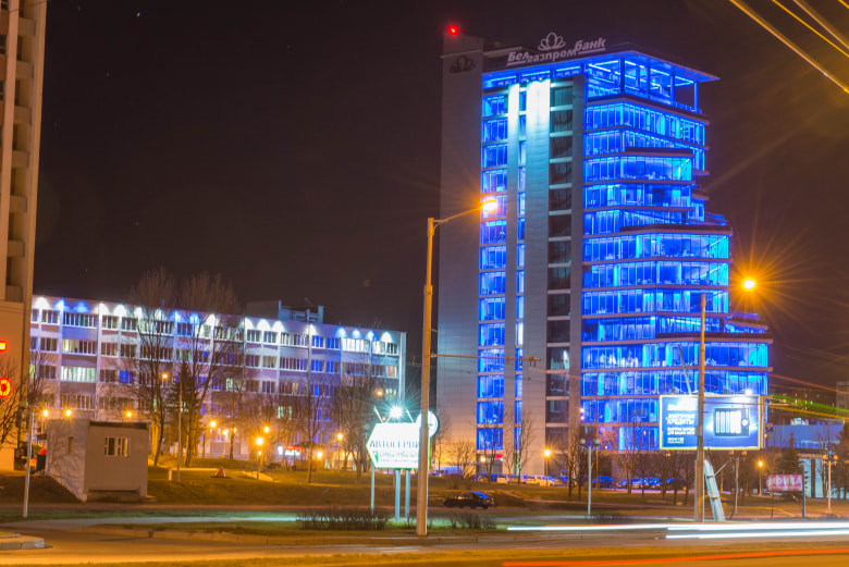 Здания, которые поддержали акцию «Зажги синим!» в Минске:
