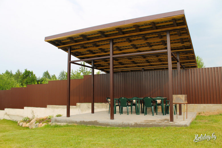 Во дворе коттеджа располагаются беседка и мангал – можно смело открывать сезон шашлыков на открытом воздухе.