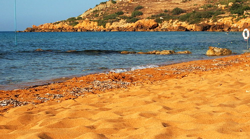 Рамла Ил-Хамра пляж на мальтийском острове Гозо имеет оранжевый цвет песка.Благодаря вулканической природе острова, этот пляж приобретает красочный вид. Остров возник из Средиземного моря и мелкие вулканические осадки, смешавшись с редким местным оранжевым известняком, придают пляжу такой вид, будто здесь всегда светит солнце.