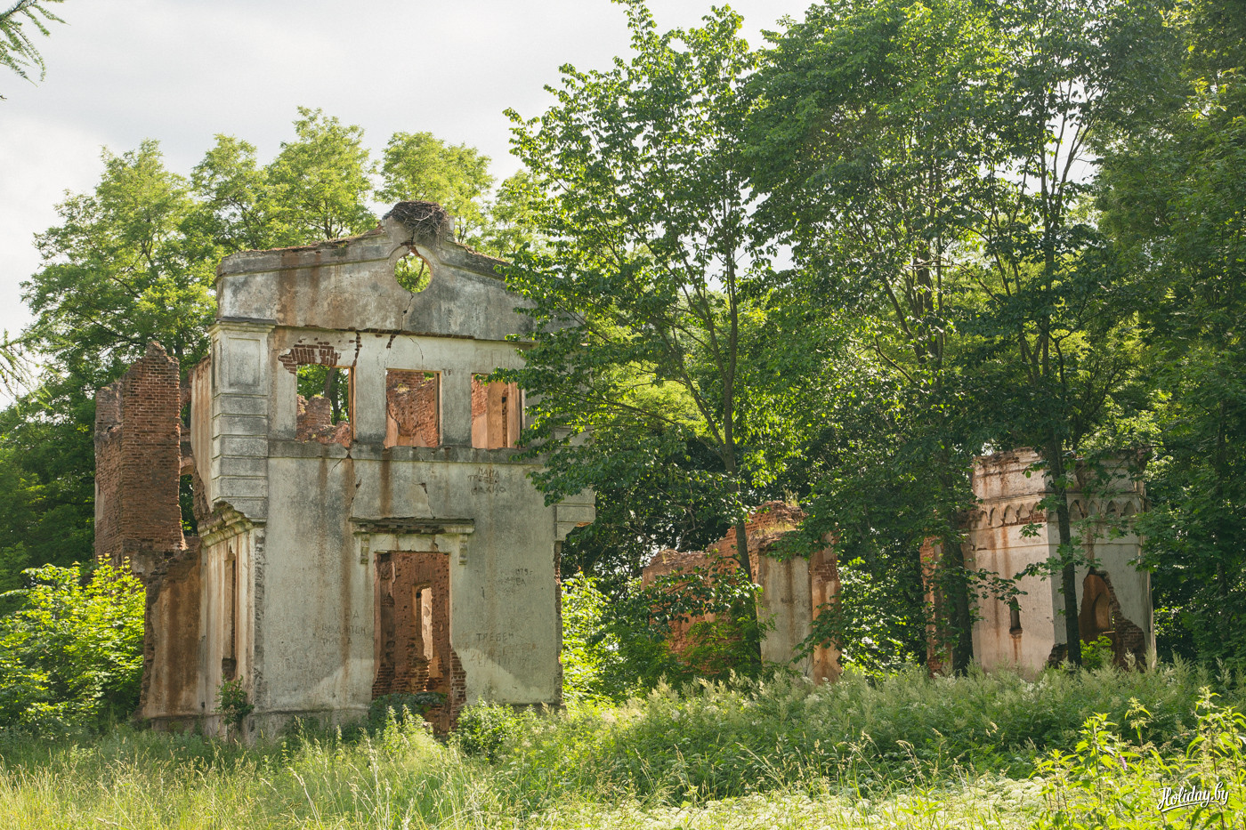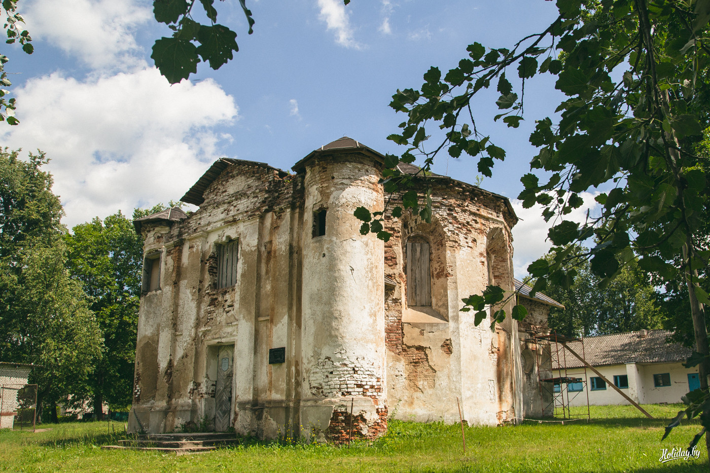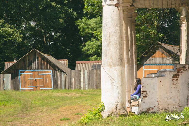 Так в Кухтичах появился большой усадебный комплекс с конюшнями, мельницей, дворцом и флигелями. Сейчас от дворца в Кухтичах ничего не сохранилось кроме оснований колонн, которые показал нам местный житель в своём огороде. Два флигеля находятся в аварийном состоянии и соседствуют с застройкой середины прошлого века. Местные жительницы не сильно знают, что это за постройки и не интересуются их судьбой: «Ай, стаяць тут дауно и усё. Зачэм вы прыехали?».