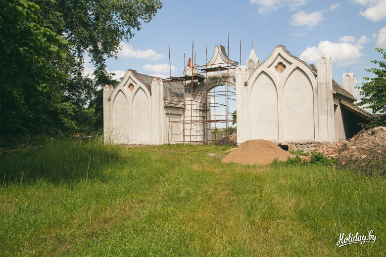 С броваром решили поступить нестандартно – сделать из него новый… дворец. Реконструкция велась десять лет и её завершал уже сын Онуфрия – Оттон Наркевич-Иодко. Чтобы стилизовать постройку под настоящий средневековый замок, было решено пристроить к нему две башни. Сегодня сохранились руины малой. Большая - высотой 27 метров - обрушилась два десятилетия тому назад.