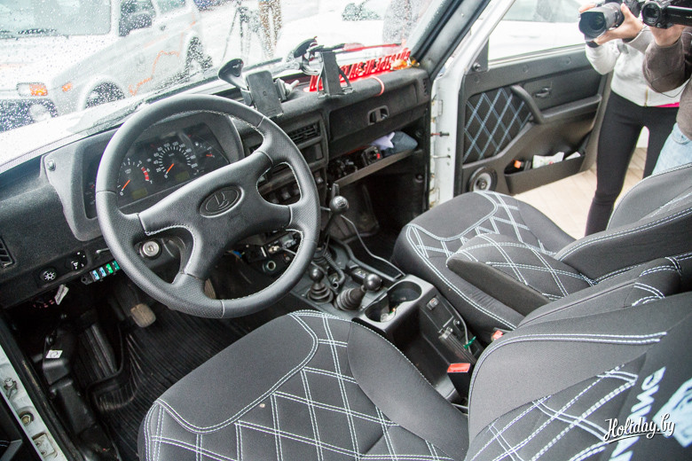 Всё внимание переключилось на него. В основе самая обыкновенная 83-сильная Lada 4х4. Тюнинговое ателье по заказу ребят выполнило доработки кузова, трансмиссии, установило навесное оборудование. В итоге машина стала на 42 мм выше своих заводских аналогов. Проведена шумо- вибро- изоляция, сделана специальная защита картера двигателя.