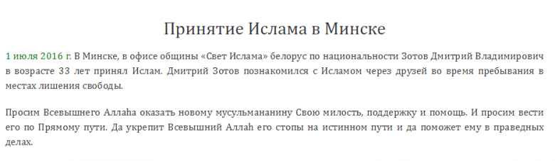 Верующим считаю того, кто «искренне уверовал сердцем» и «произнес вслух свидетельство единобожия» – рассказывают на сайте минской мечети.