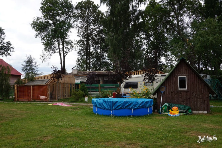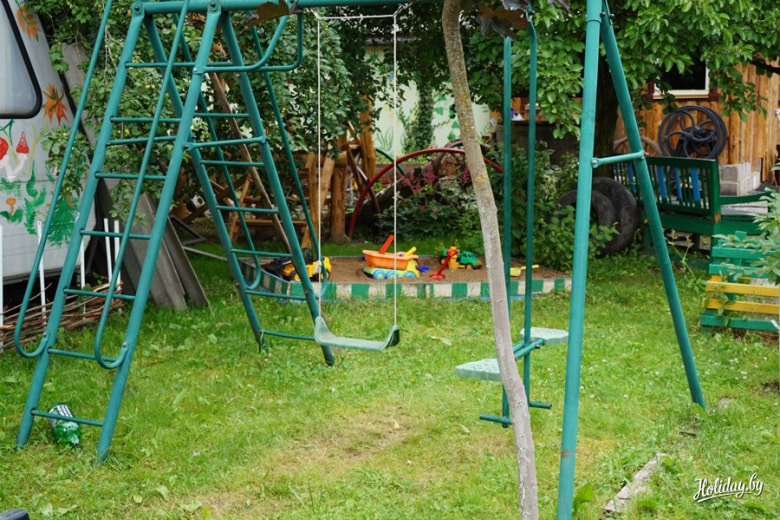 А еще это целый рай для детей. Есть надувной бассейн-лодка и детская площадка с качелями и песочницей.