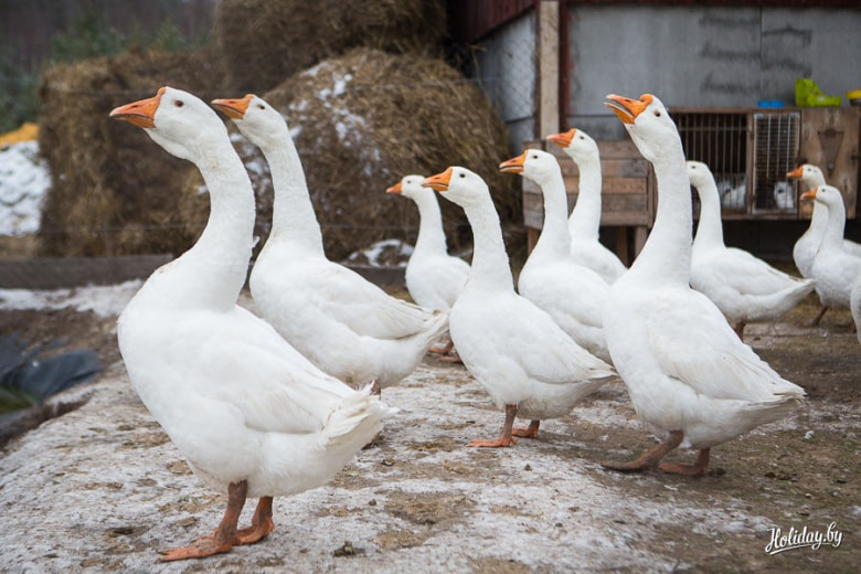 Кроме пушистых, есть вольеры с козами, индюками, коровами и гусями, которых можно кормить морковкой и травой. Животные не декоративные: они живут обычной деревенской жизнью, так что в усадьбе всегда найдется свежее молоко, творог и яйца.