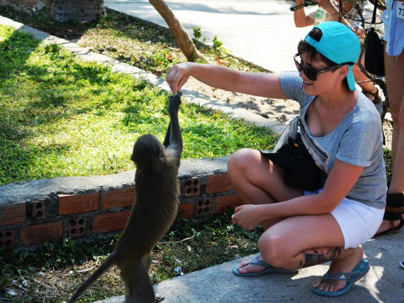 Остров Обезьян называется так из-за огромного количества на нем самих обезьян. Их могут покормить все желающие. Они любят чипсы, их можно купить где-то за 25 000 донгов на входе. Здесь же предупреждают, что улыбаться обезьянам категорически запрещено, так как для них это считается сигналом к нападению. На случай появления вожака, гидам даже выдают рогатки. Хотя мне повезло, накормила обезьянок вдоволь. Некоторые даже запрыгивали на меня. И как тут не улыбнуться? Конечно, наглости у них не занимать. На острове они – полноправные хозяева. А кормить лучше всех обезьян, иначе остальные будут завидовать.