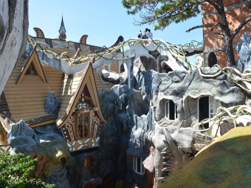 В Далате я посетила несколько интересных мест, из которых был и знаменитый КрейзиХаус. Но больше всего меня впечатлили сами горы. Горы Вьетнама – это настоящие джунгли, где обитает масса диких животных, змей и насекомых. Именно это послужило плюсом Вьетнаму в войне с США. Солдаты спокойно могли прятаться в джунглях, где, например, из десяти высадившехся солдат США, шесть погибали от укусов насекомых и змей, двое – от когтей диких зверей.