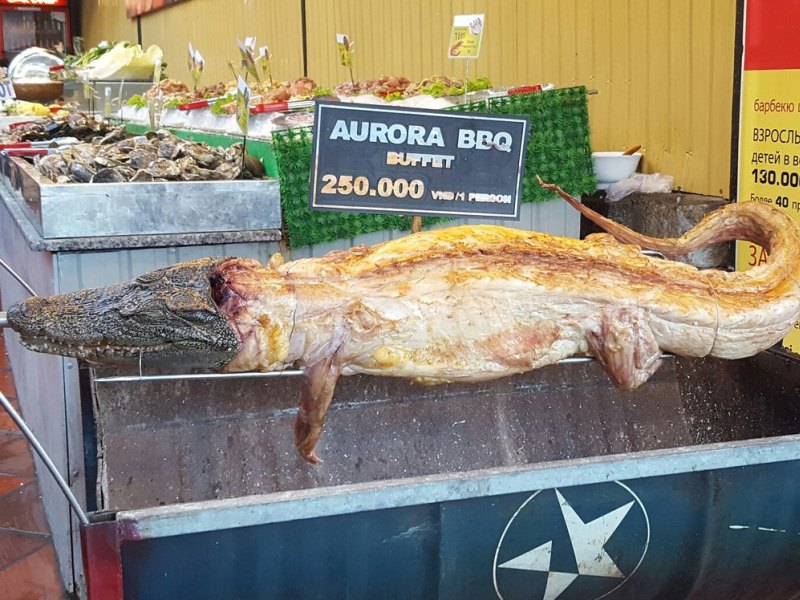 Говорят, что вьетнамцы едят всякую живность типа лягушек, крыс и всяких жучков. Но я не видела ничего подобного. И теперь думаю, что это какой-то миф. Хотя жареного крокодила я все-таки увидела на прилавке одного из магазинов. Он стоил 250.000 донгов за кг. Я не решилась попробовать этот деликатес. Нашла в Нячанге хороший итальянский ресторанчик и часто питалась там. Ела, в основном, салаты, рис, и макароны с пастой.